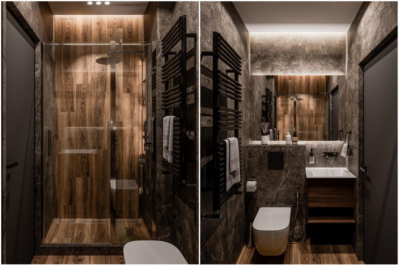 Контрастный интерьер со стеной-водопадом