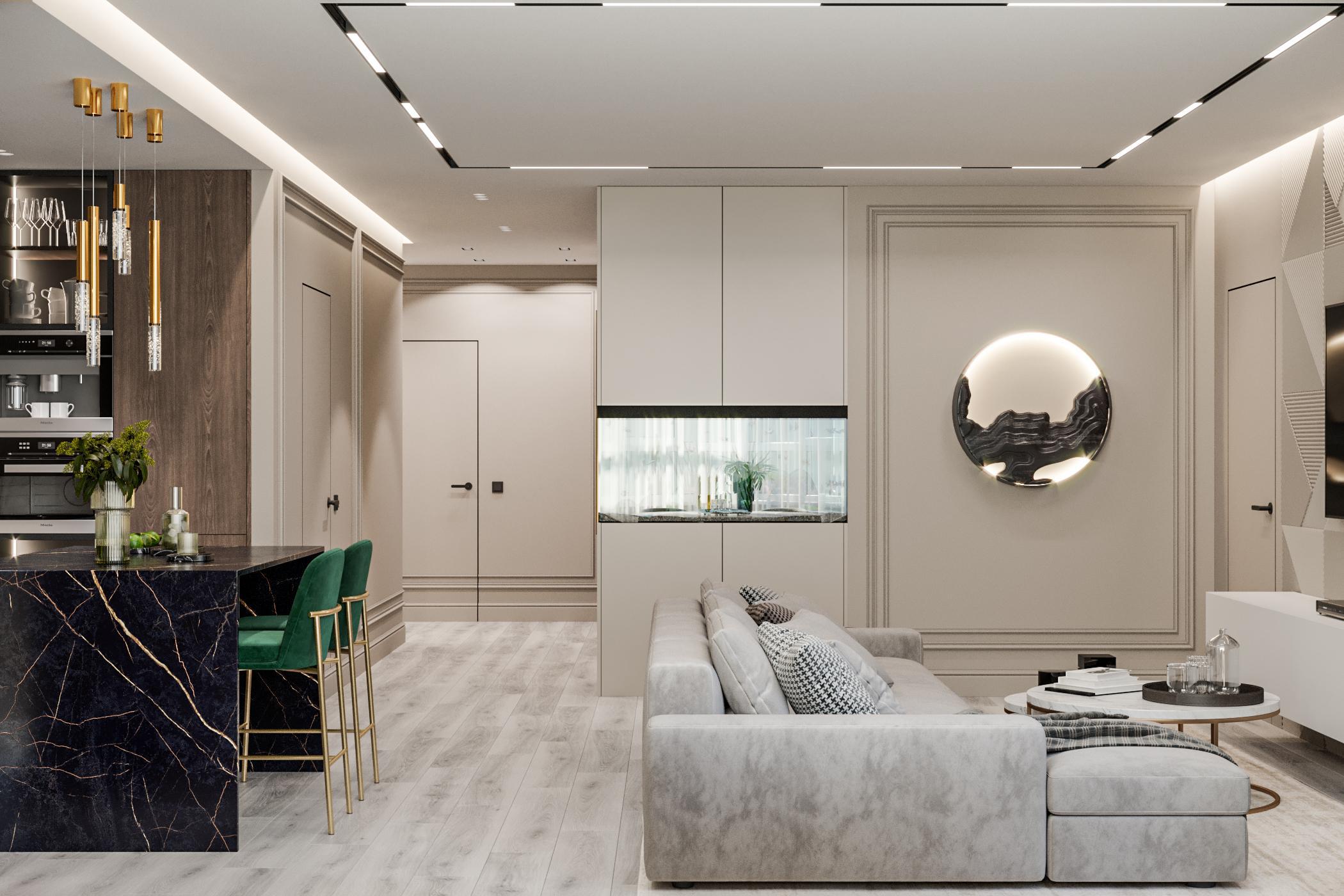 Современная классика в квартире с открытой планировкой